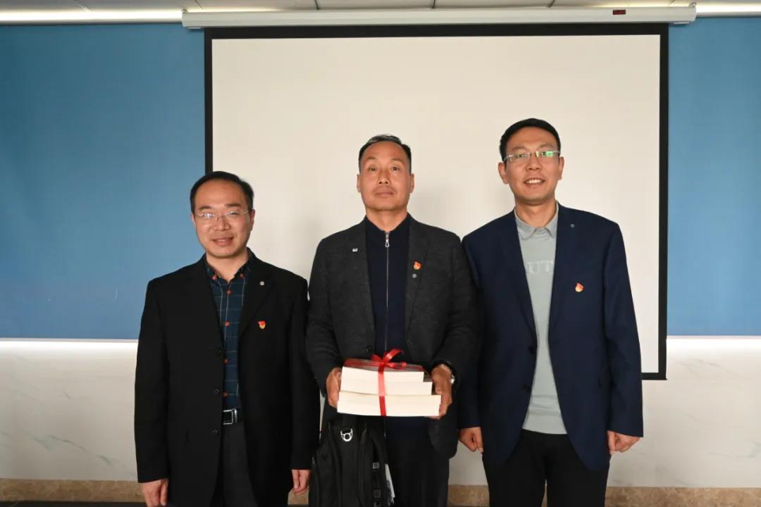 最后,白戰(zhàn)英、常豪代表院領(lǐng)導(dǎo)班子為雷先鋒贈送黨史學(xué)習(xí)教育書籍、愛心包及防疫用品,同時(shí)祝愿雷先鋒在新的工作崗位上一切順利。