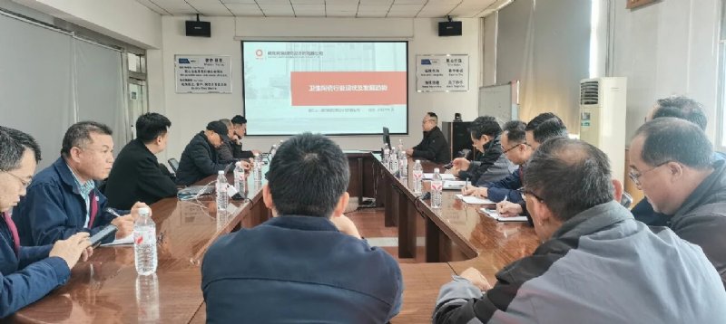2025年11月28日,咸陽陶瓷院副總經理劉小云在某衛浴有限公司進行“衛生陶瓷行業發展現狀及未來趨勢”的行業專題報告交流,公司總經理金震輝、副總經理王洪亭,以及研發、生產及市場部門核心骨干共同參與深度交流。
